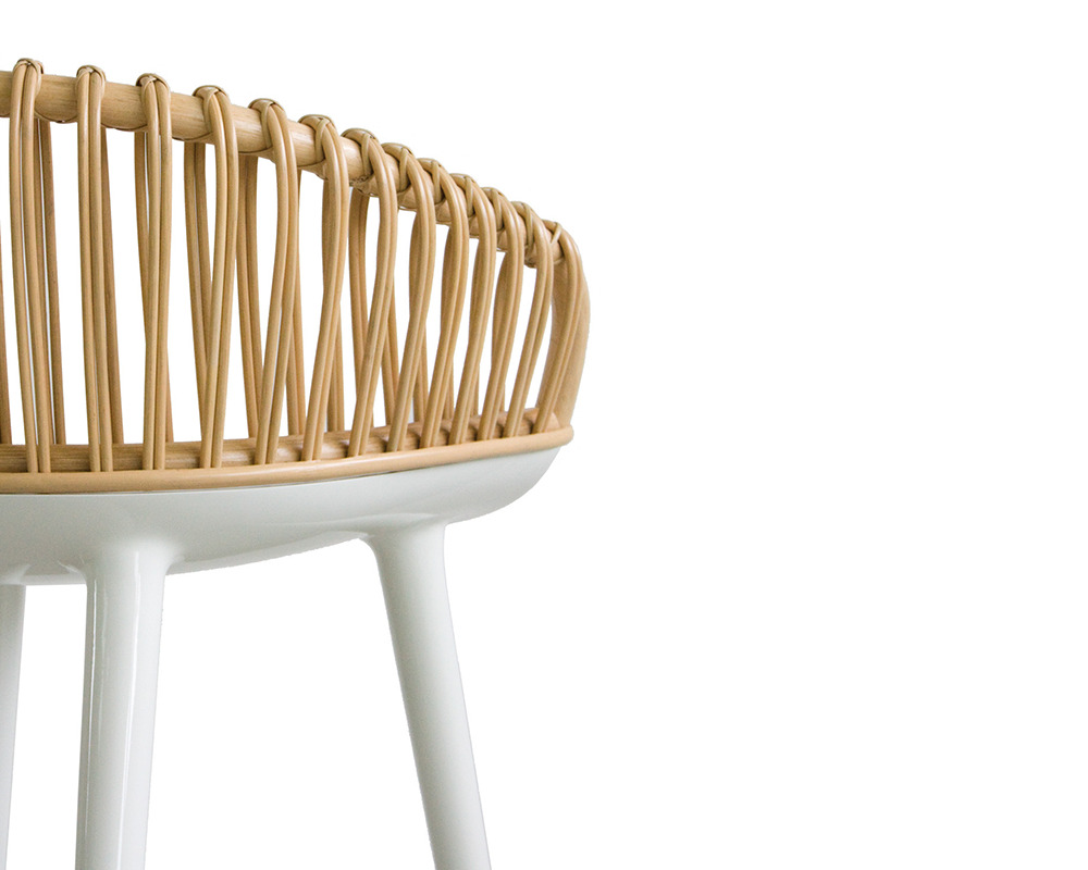 Sedia Magis Cyborg Club chair con struttura bianca e schienale in midollino naturale