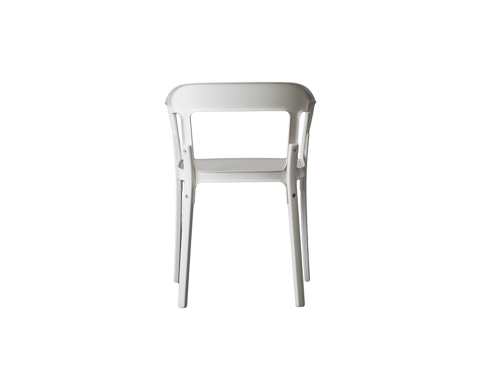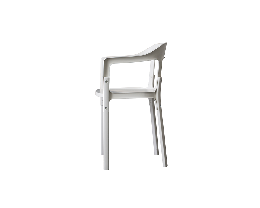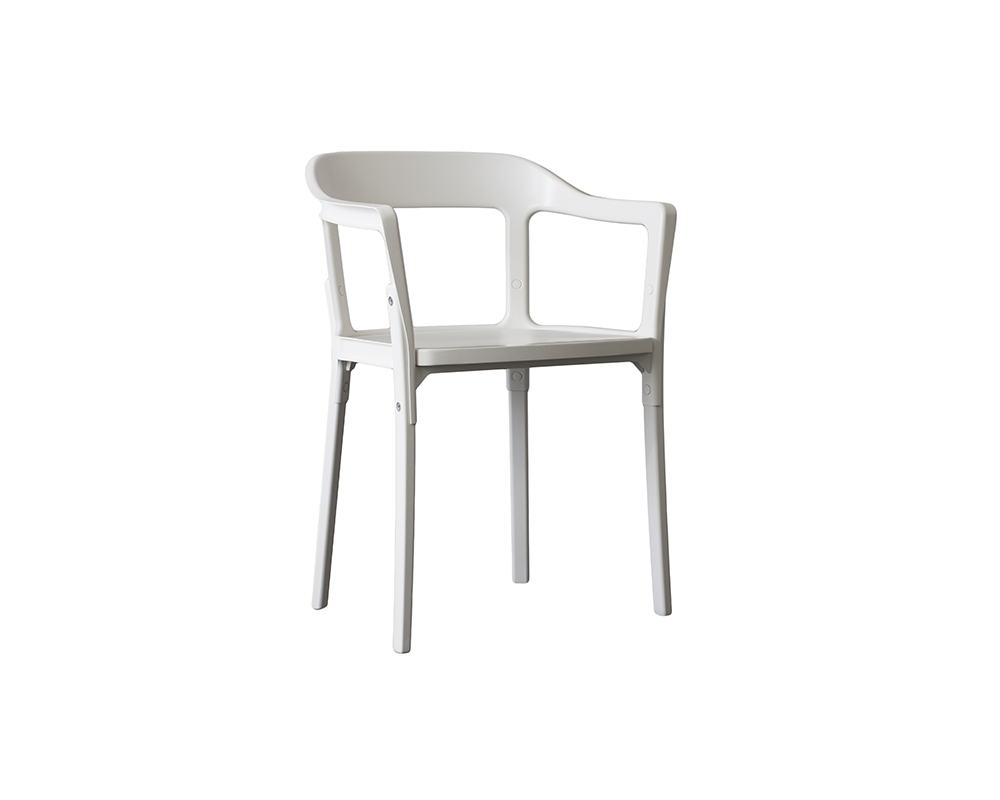 Sedia con braccioli Magis Steelwood sedile e gambe in massello di faggio naturale verniciato bianco, lo schienale è in lamiera di acciaio verniciato poliestere bianco