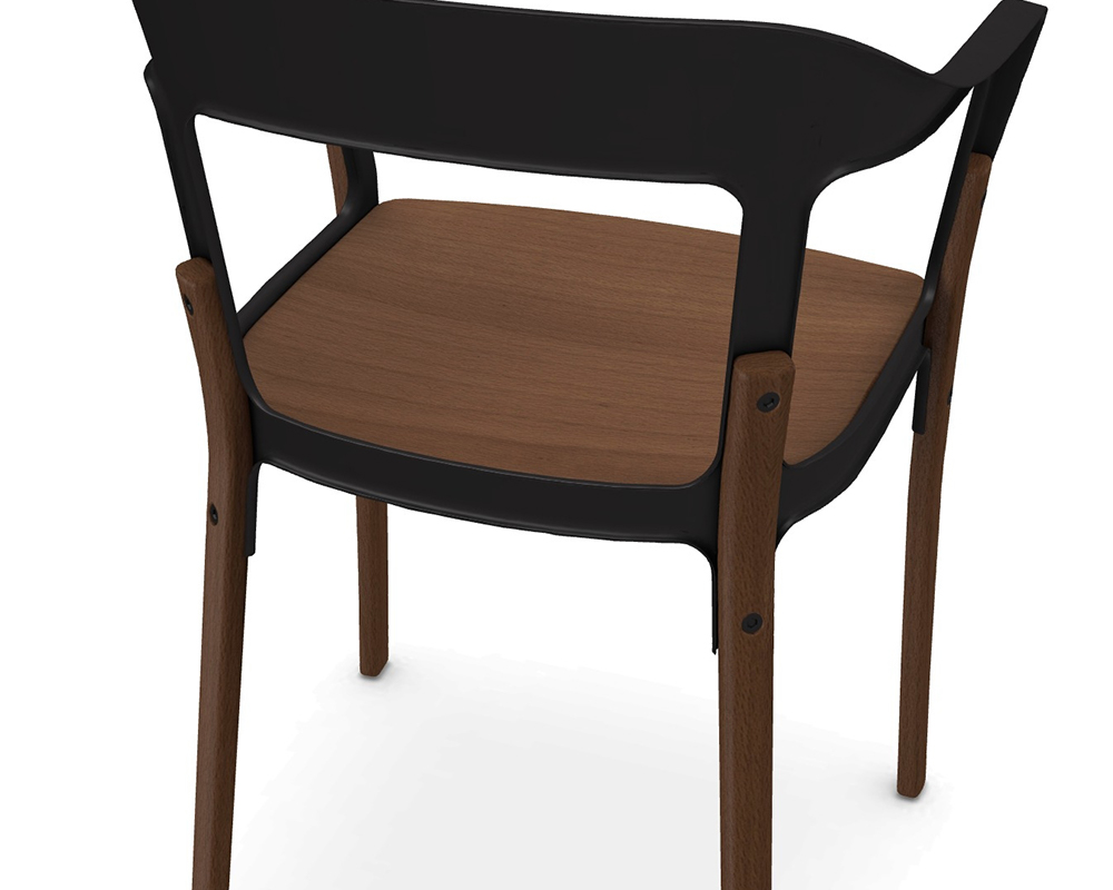 Sedia con braccioli Magis Steelwood sedile e gambe in massello di faggio noce americano, lo schienale è in lamiera di acciaio verniciato poliestere nero